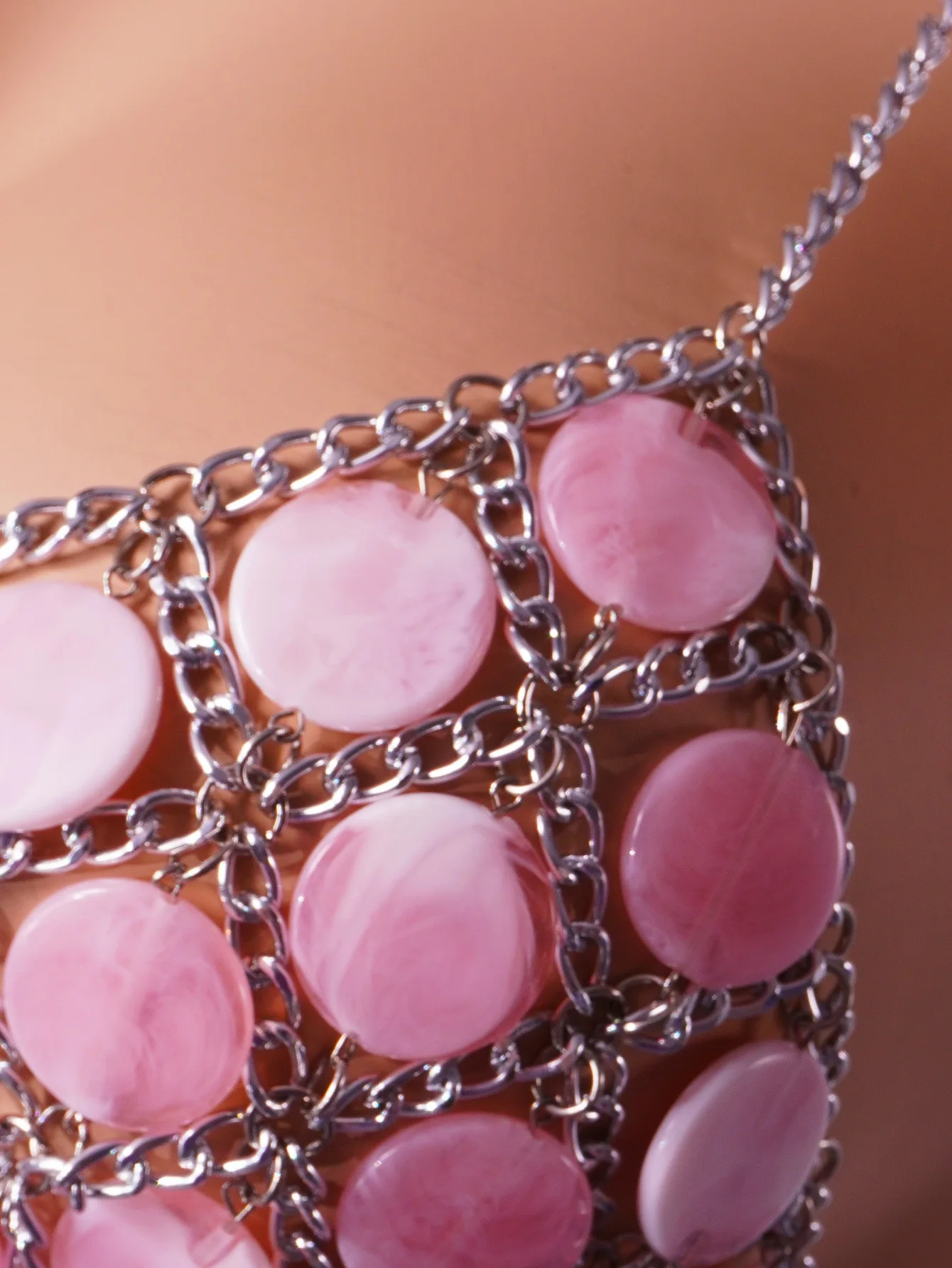 2025 Fashion Top Faux Mother of Pearl Stained Pink Goddess Mermaid Bra Beachwear Festival Body Chain Round Discs Beaded Bralette