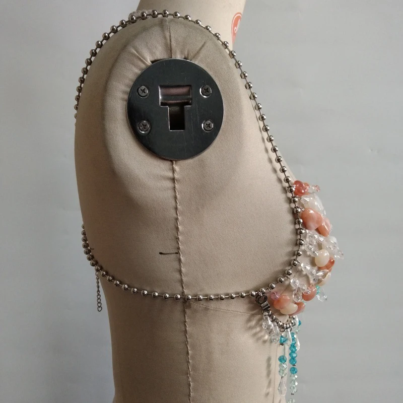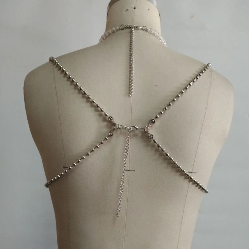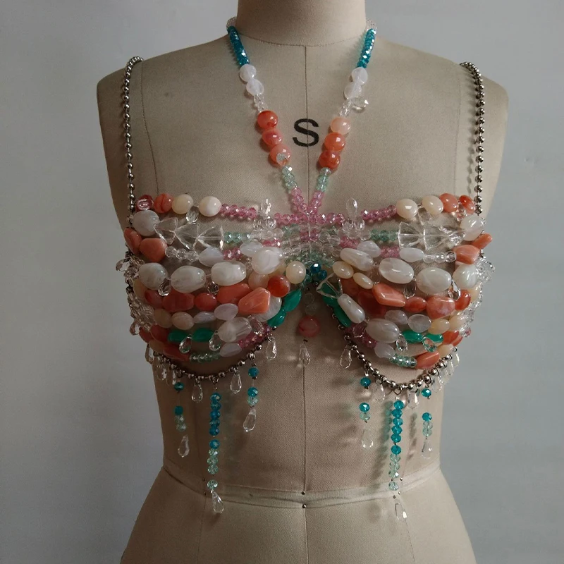 2025 Handmade Summer Female Gemstone Multicoloured Halterneck Bra Top Body Chain Bralette Sexy Crystal Beaded Bikini