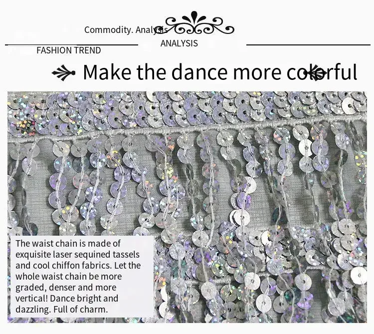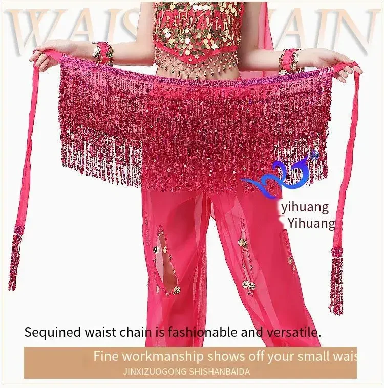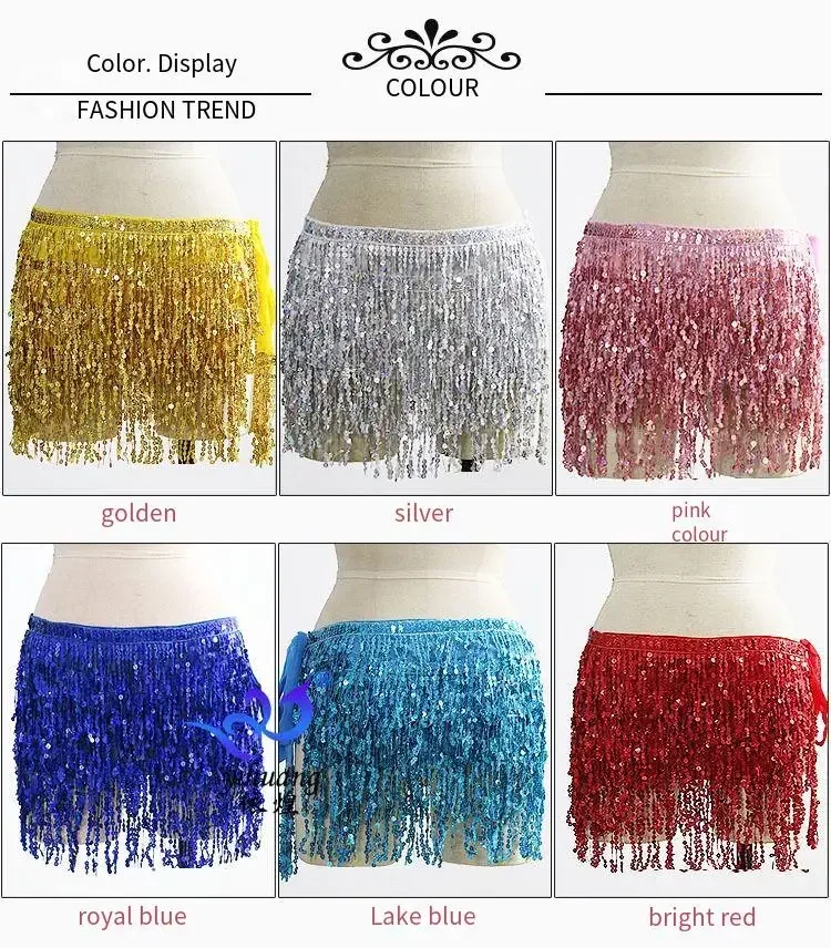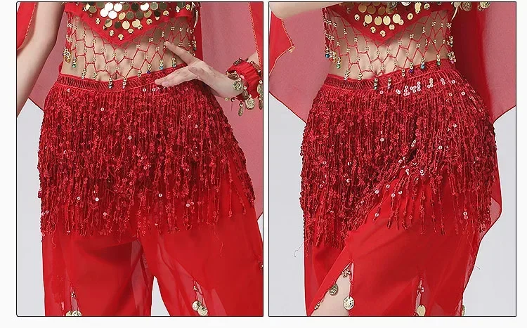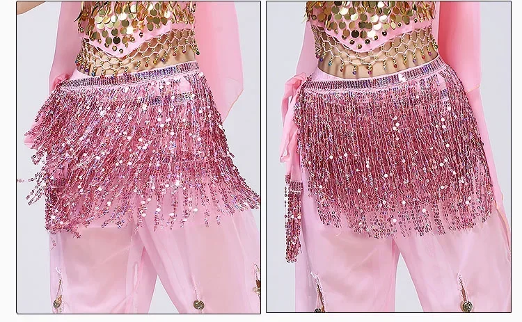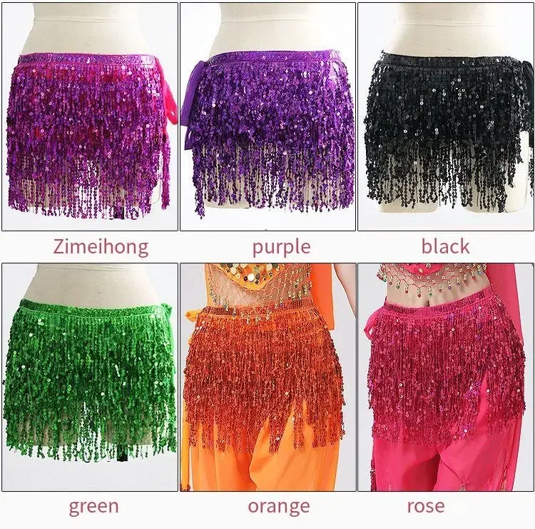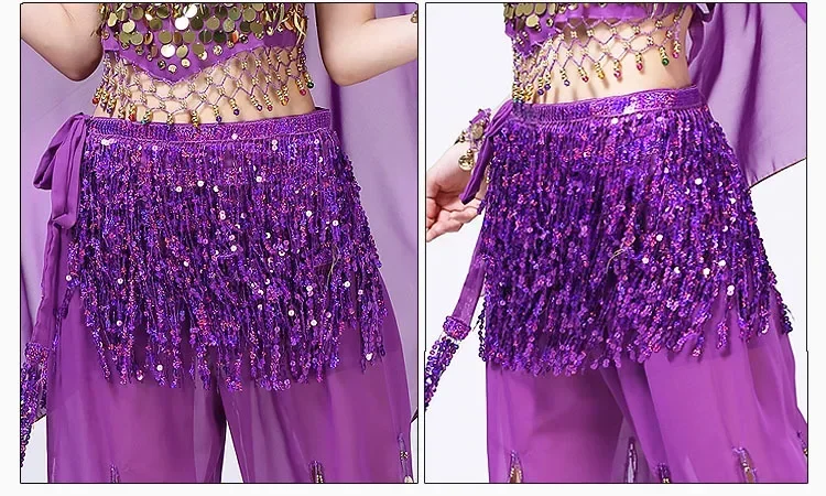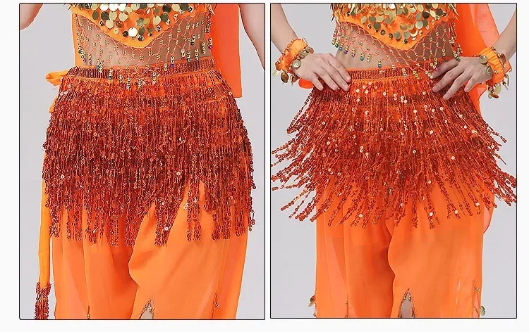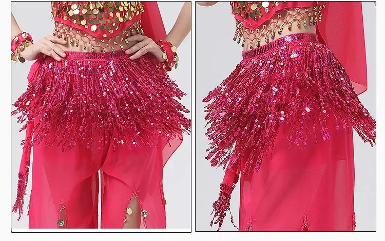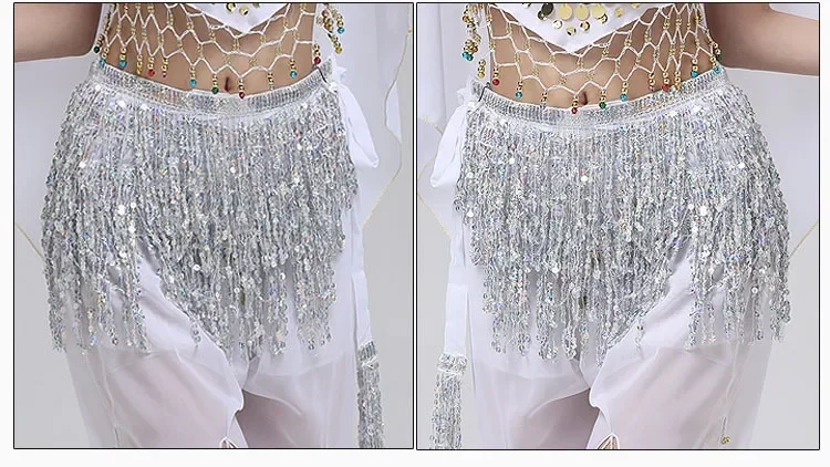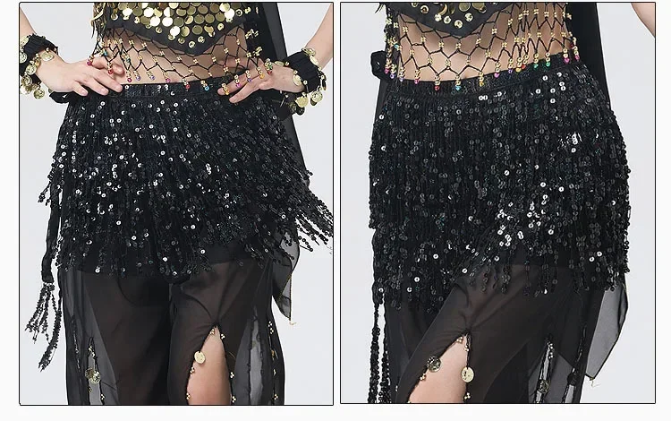 Belly Dance Costume Sequins Tassel Hip Towel Beads Waist Chain Sequins Tassel Dance Dress Prom Performance Waist Towel