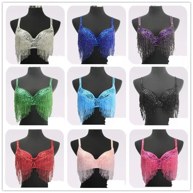 Belly dance costumes senior sexy sequins tassel beads belly dance bra for women belly dancing bra tops
