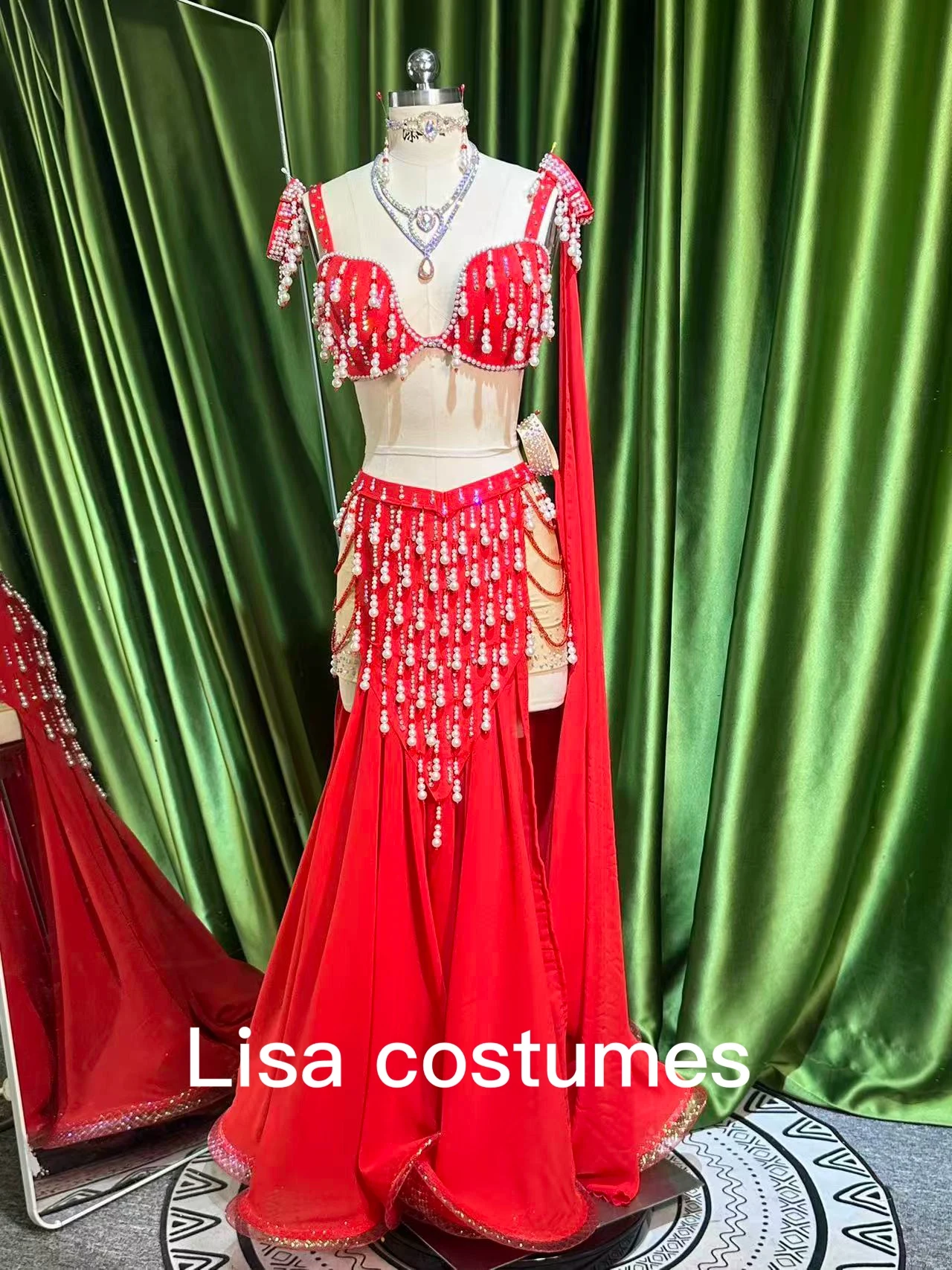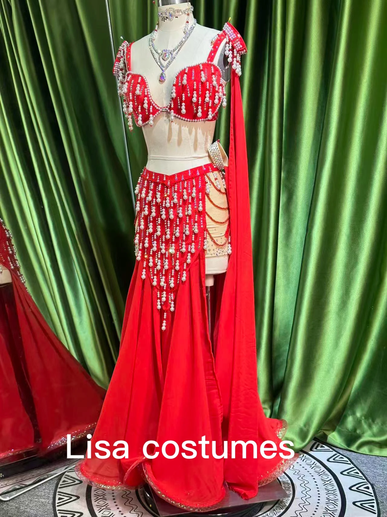 Customized Belly Dance Costumes Performance Dress Set Oriental Dance Dress Suit bra belt skirt