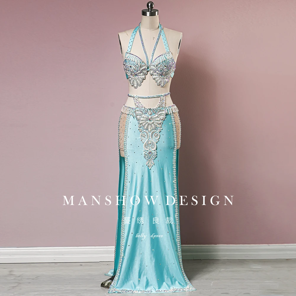 Customized Bellydance Costume Women's Sense Hip Hugging Skirt Set High Waisted Tassel Long Skirt Belly Dancing Bra Performance