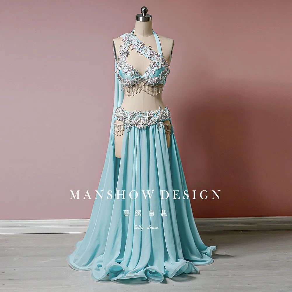 Customized Bellydance Suit Performance Costume Women' Clothing Sexy Lace Tassel Dress Belly Dancing Bra Team Competition Uniform