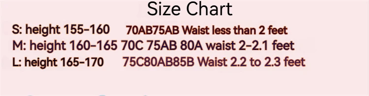 - Size S: Bust is usually around 80-82cm. Suitable for women with a thin figure, usually corresponding to a height of 155-160cm and weight of 40-45kg.