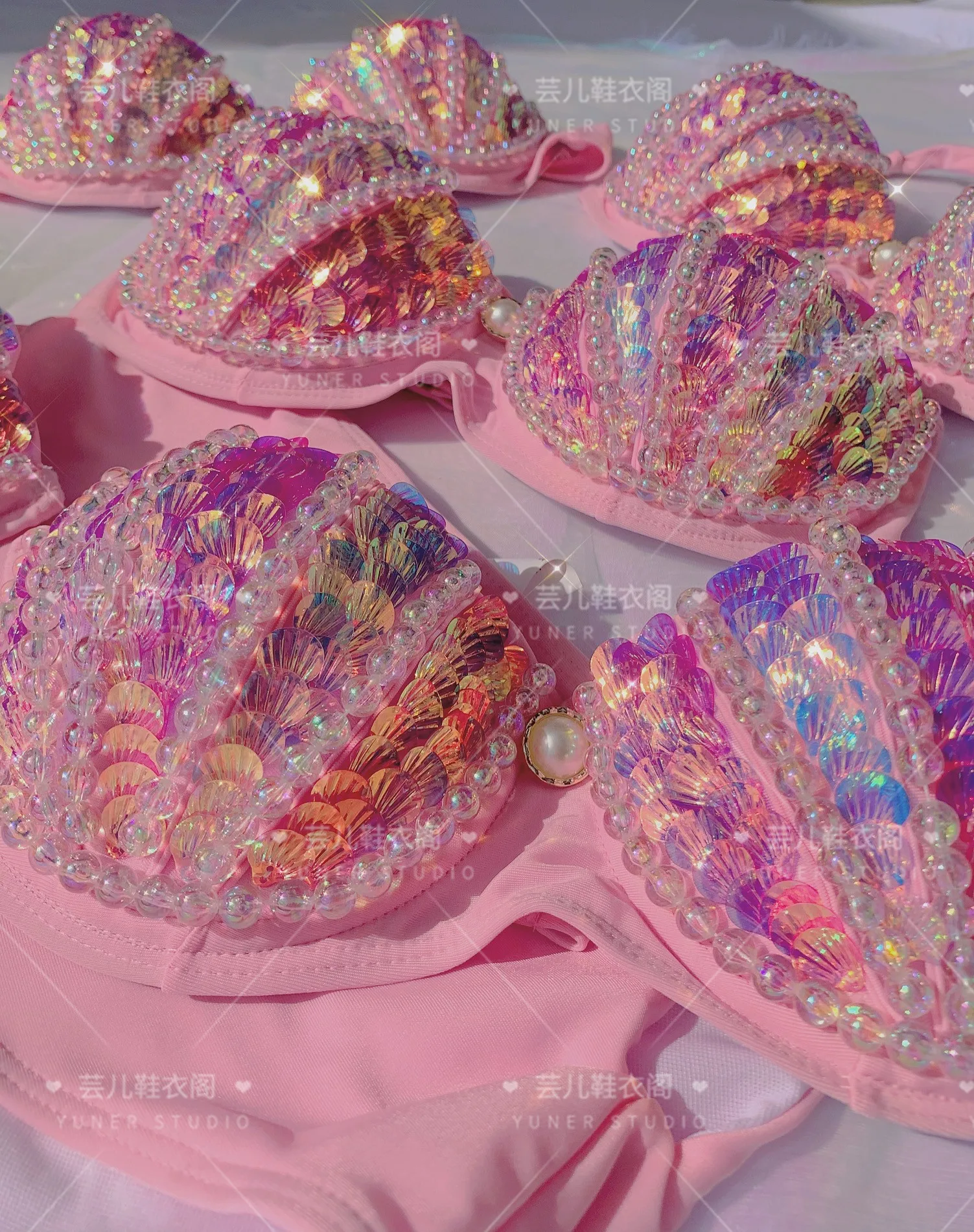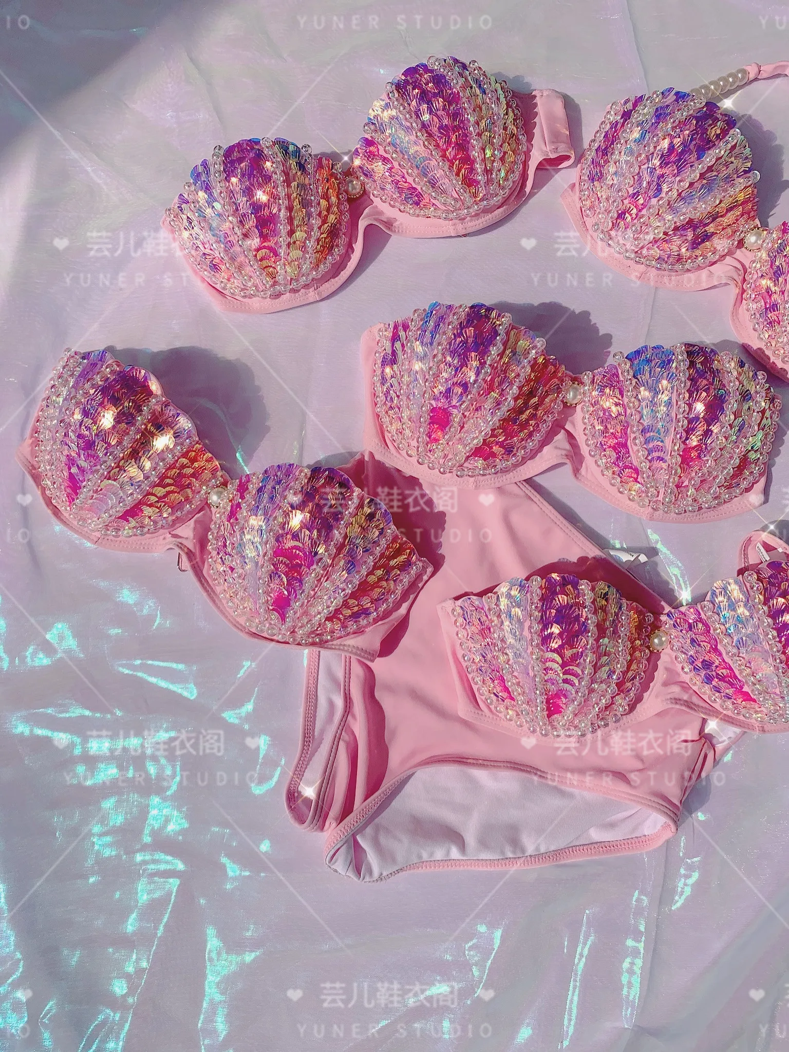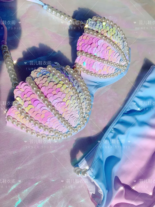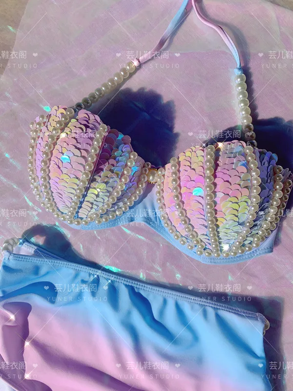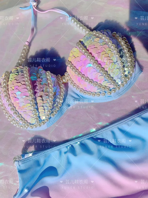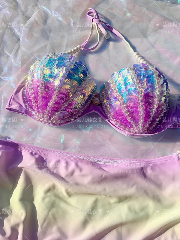 New Thailand Shell Sequin Bikini Corset Mermaid Show Spa Vacation Split Swimsuit Gathered Sexy Corset Set