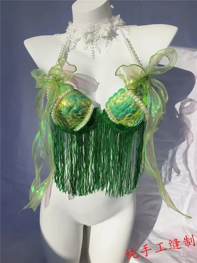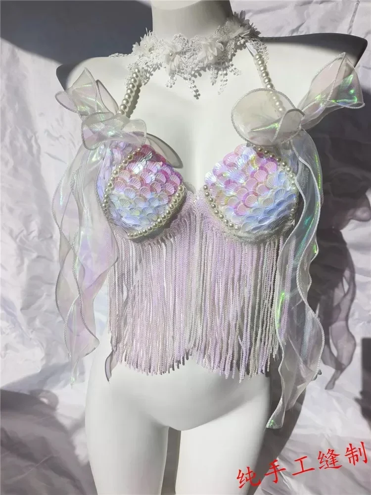 Mermaid Sequin Shell Bikini Top Bra Suitable For Oceanarium Bar Show Beach Wear Mermaid Sequin Bra Set
